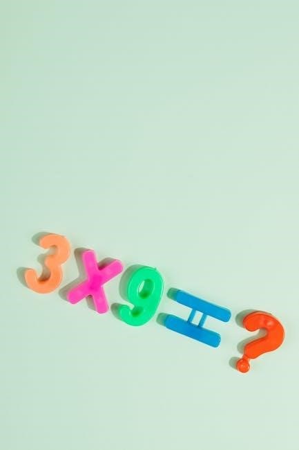 Mnemonics and memory aids are powerful tools for mastering multiplication facts 0-12. Techniques like acronyms‚ rhymes‚ or visual patterns help students associate facts with memorable cues; For example‚ the phrase “Columbus Sailed the Ocean Blue in 1492” can help remember 6×8=48. Printable PDF resources often incorporate these aids‚ making learning interactive and engaging. Mnemonics reduce cognitive load‚ allowing students to recall facts more effortlessly. Visual memory aids‚ such as diagrams or charts‚ further reinforce learning. By leveraging these strategies‚ students can build a strong foundation for multiplication mastery and improve long-term retention of facts.